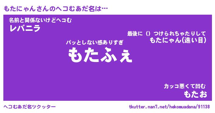 | ファンタジー風あだ名 | 『モタフェル』『エターナルモタニャンー』 |