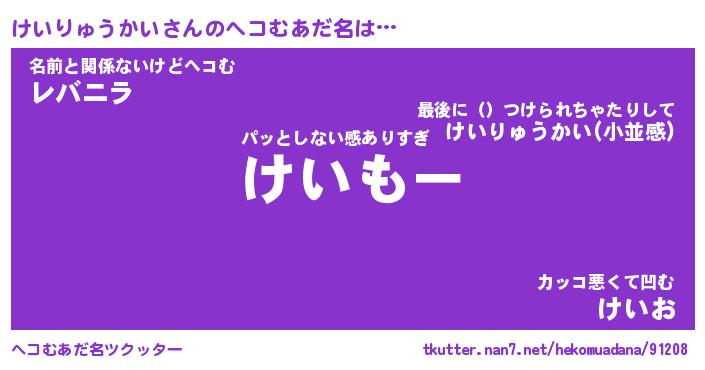 | 男性向けラノベタイトル風あだ名 | 『けいりゅうかいの憂鬱』 |
