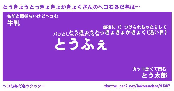 | ヒーロー風カッコイイあだ名 | 『スーパートウキョウトッキョキョカキョク』 |