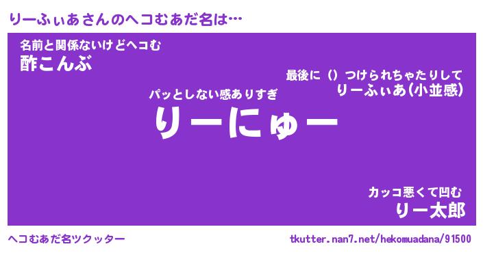 | 肩書あだ名 | 『りーふぃあ店長』『りーふぃあ国家主席』 |