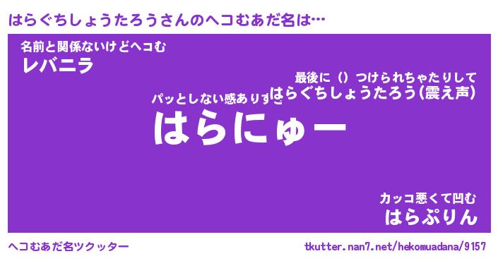 | 意味不明あだ名 | 『ペロリンはらぐちしょうたろう』 |
