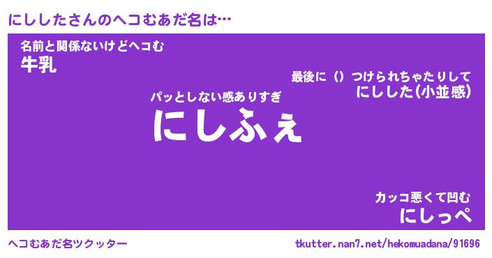 | ファンタジー風あだ名 | 『ニシフェル』『エターナルニシシター』 |