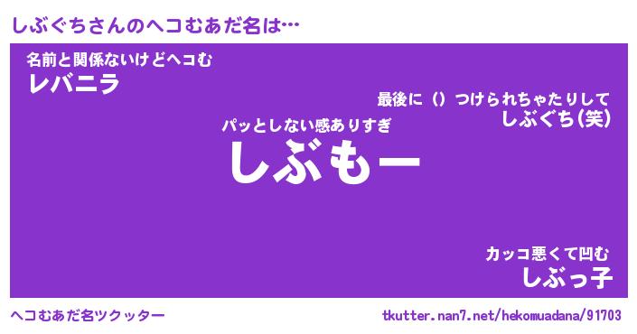 | 男性向けラノベタイトル風あだ名 | 『しぶぐちの憂鬱』 |