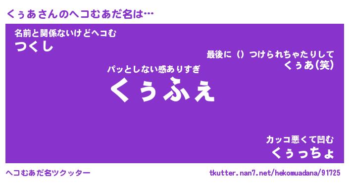 | 意味不明あだ名 | 『ペロリンくぅあ』『くぅあフォーエバー』 |