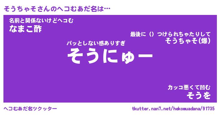 | 男性向けラノベタイトル風あだ名 | 『そうちゃその憂鬱』 |
