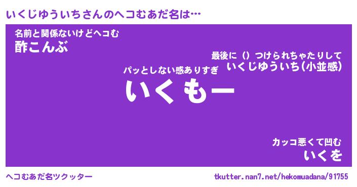 恥ずかしいあだ名 | 『プリティーいくじゆういち』『いくちん』 |