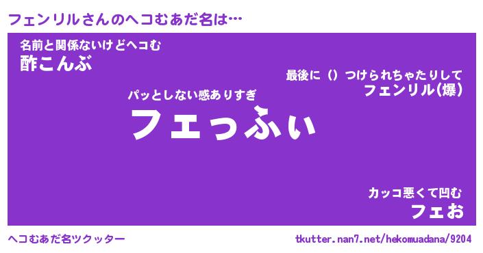 | 恥ずかしいあだ名 | 『プリティーフェンリル』『フェっちょ』 |