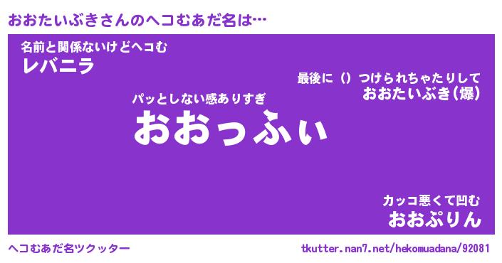 | 肩書あだ名 | 『おおたいぶき御曹司』 |
