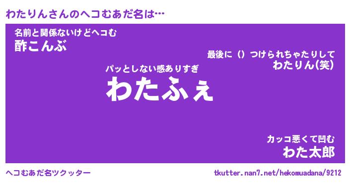 | 男性向けラノベタイトル風あだ名 | 『わたりんの憂鬱』 |