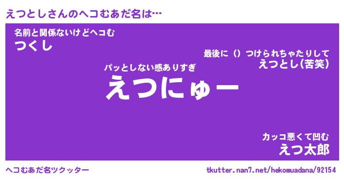 | 意味不明あだ名 | 『ペロリンえつとし』『永久保存えつとし』 |