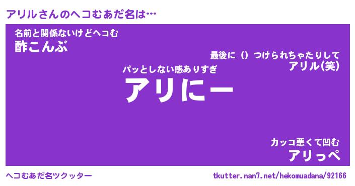 | 2回繰り返すあだ名 | 『アリアリ』『アアリリ』『ぬぷぬぷ』 |