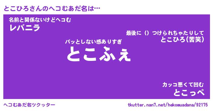| 意味不明あだ名 | 『ペロリンとこひろ』『永久保存とこひろ』 |