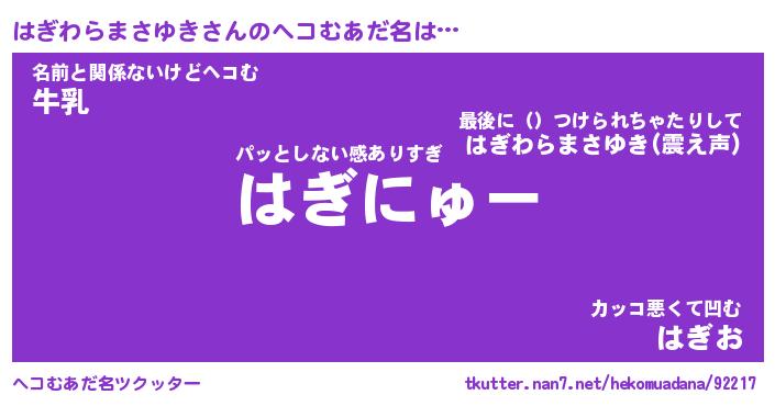 | ポケモン風あだ名 | 『ハギチュウ』『ハギワダネ』 |
