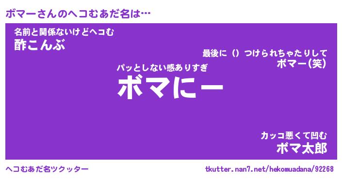 | 男性向けラノベタイトル風あだ名 | 『ボマーの憂鬱』 |