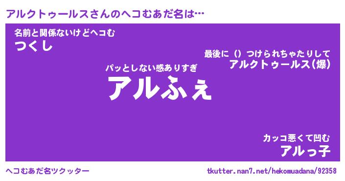 | 男性向けラノベタイトル風あだ名 | 『アルクトゥールスの憂鬱』 |
