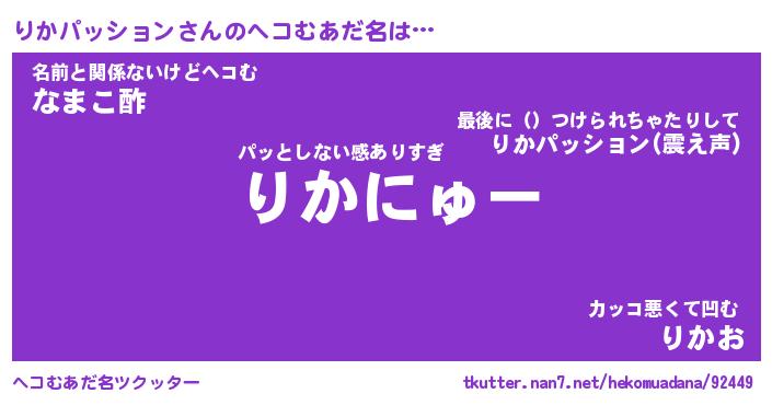 | 胡散臭い通販商品みたいなあだ名 | 『億万長者になれる水晶球…その名も「りかパッション」』 |