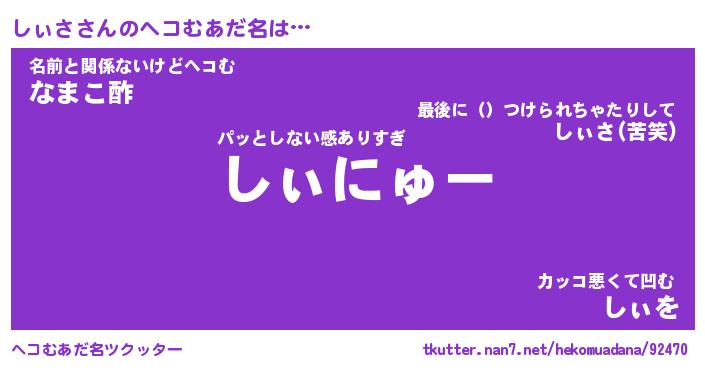 | 意味不明あだ名 | 『ペロリンしぃさ』『しぃさフォーエバー』 |