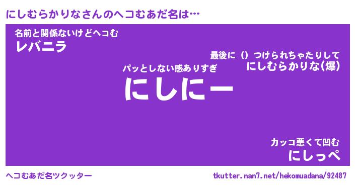 | ヒーロー風カッコイイあだ名 | 『スーパーニシムラカリナ』 |