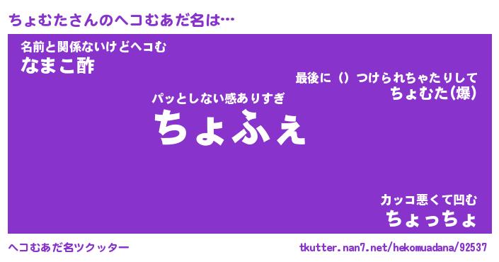 | 意味不明あだ名 | 『ペロリンちょむた』『永久保存ちょむた』 |