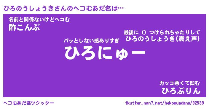 | ポケモン風あだ名 | 『ヒロチュウ』『ヒロノダネ』 |