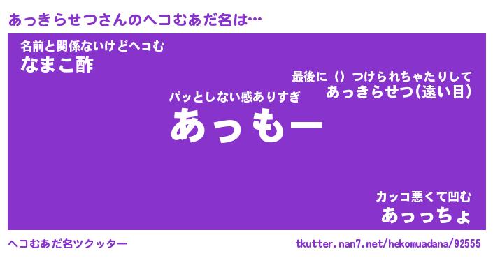 | 胡散臭い通販商品みたいなあだ名 | 『必ず成功する霊験あらたかなお札…その名も「あっきらせつ」』 |