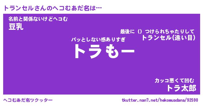 | ヒーロー風カッコイイあだ名 | 『スーパートランセル』『天弓騎士トラ』 |