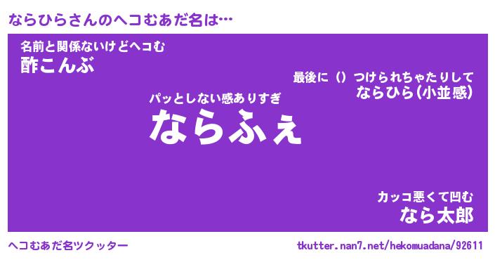 | ヒーロー風カッコイイあだ名 | 『スーパーナラヒラ』『幻影騎士ナラ』 |