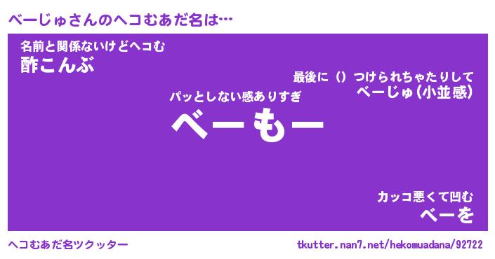 | 意味不明あだ名 | 『ペロリンべーじゅ』『永久保存べーじゅ』 |