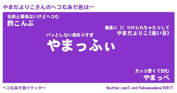 | 伝説のあだ名 | 『封印されしスナイパーやまだよりこ』 |
