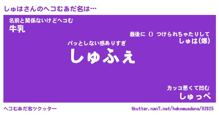 | 2回繰り返すあだ名 | 『しゅしゅ』『ししゅゅ』『ぬらぬら』 |
