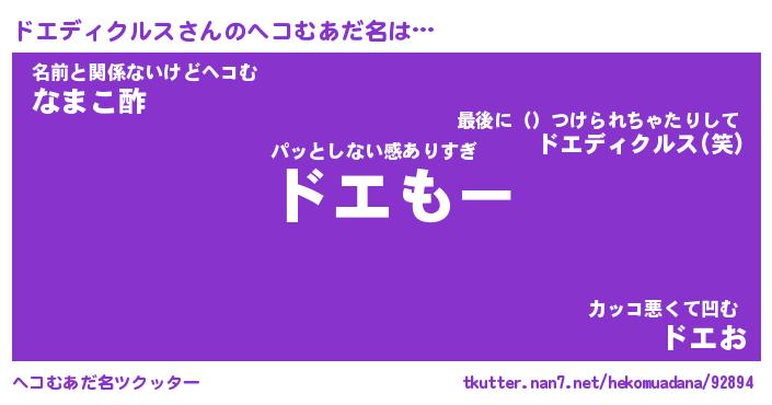 | 男性向けラノベタイトル風あだ名 | 『ドエディクルスの憂鬱』 |