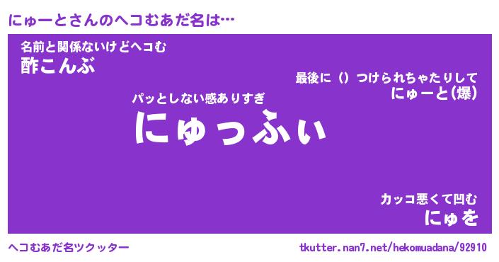 | 欧米人風あだ名 | 『マイケルにゅーと』『ウサインにゅーと』 |
