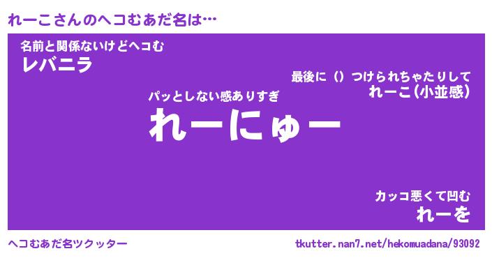 | 意味不明あだ名 | 『ペロリンれーこ』『れーこフォーエバー』 |