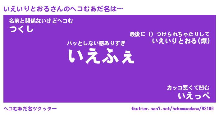 | 恥ずかしいあだ名 | 『プリティーいえいりとおる』『いえちん』 |