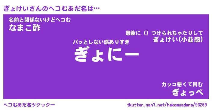 | ファンタジー風あだ名 | 『ギョフェル』『エターナルギョケイー』 |