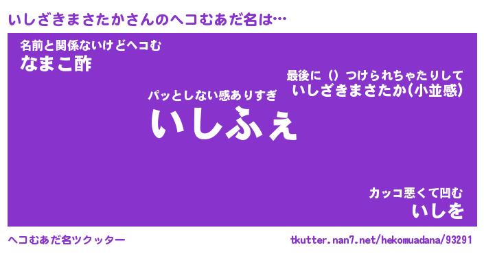 | 男性向けラノベタイトル風あだ名 | 『いしざきまさたかの憂鬱』 |
