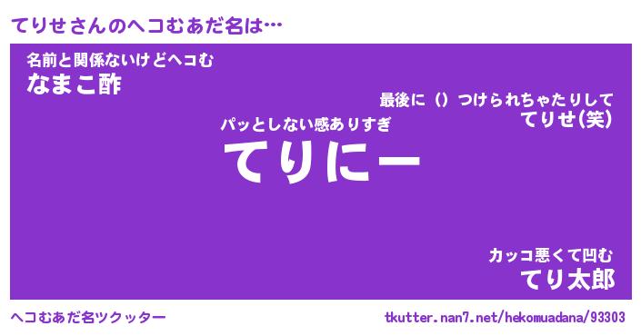 | 男性向けラノベタイトル風あだ名 | 『てりせの憂鬱』 |