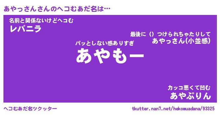 | ポケモン風あだ名 | 『アヤチュウ』『アヤッダネ』 |