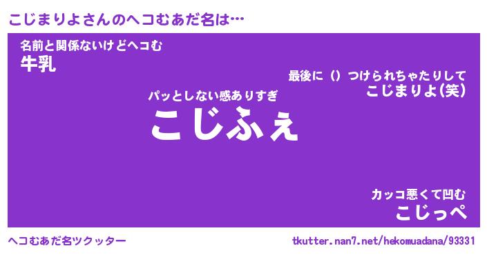 | 2回繰り返すあだ名 | 『こじこじ』『ここじじ』『うろうろ』 |