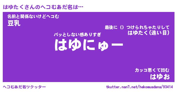 | ポケモン風あだ名 | 『ハユチュウ』『ハユタダネ』 |