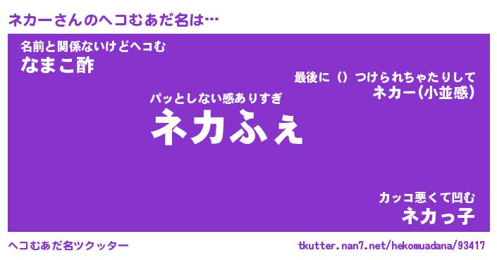 | ポケモン風あだ名 | 『ネカチュウ』『ネカーダネ』 |