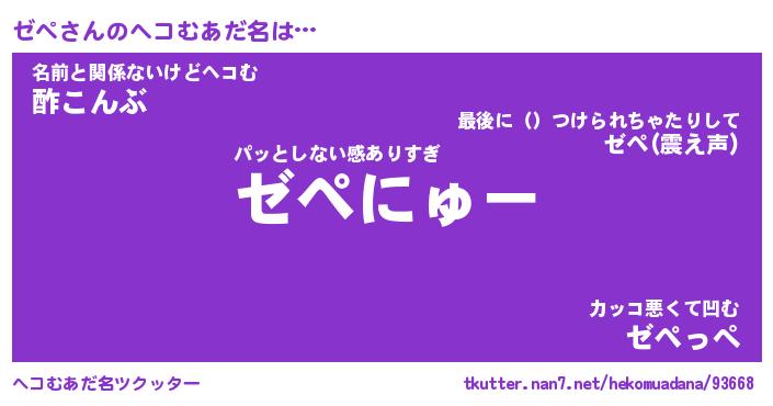 | 2回繰り返すあだ名 | 『ゼペゼペ』『ゼゼペペ』『ねばねば』 |