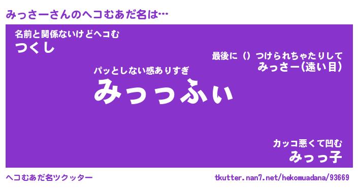 | 意味不明あだ名 | 『ペロリンみっさー』『永久保存みっさー』 |