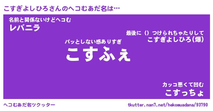 | 恥ずかしいあだ名 | 『プリティーこすぎよしひろ』『こすちん』 |