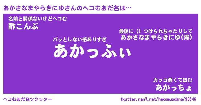 | 男性向けラノベタイトル風あだ名 | 『あかさなまやらきにゆの憂鬱』 |