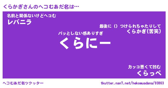 | 意味不明あだ名 | 『ペロリンくらかぎ』『永久保存くらかぎ』 |
