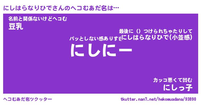 | ポケモン風あだ名 | 『ニシチュウ』『ニシハダネ』 |