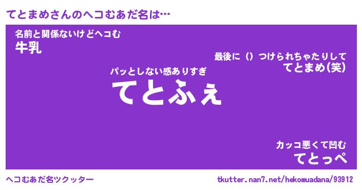 | 意味不明あだ名 | 『ペロリンてとまめ』『永久保存てとまめ』 |