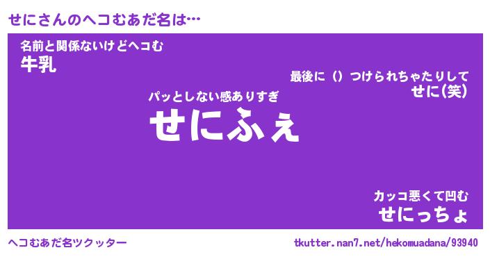 | ポケモン風あだ名 | 『セニチュウ』『セニダネ』『ヒセニ』 |