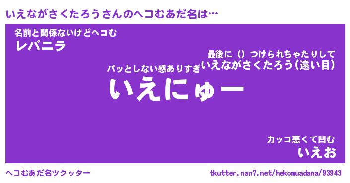 | ヒーロー風カッコイイあだ名 | 『スーパーイエナガサクタロウ』 |